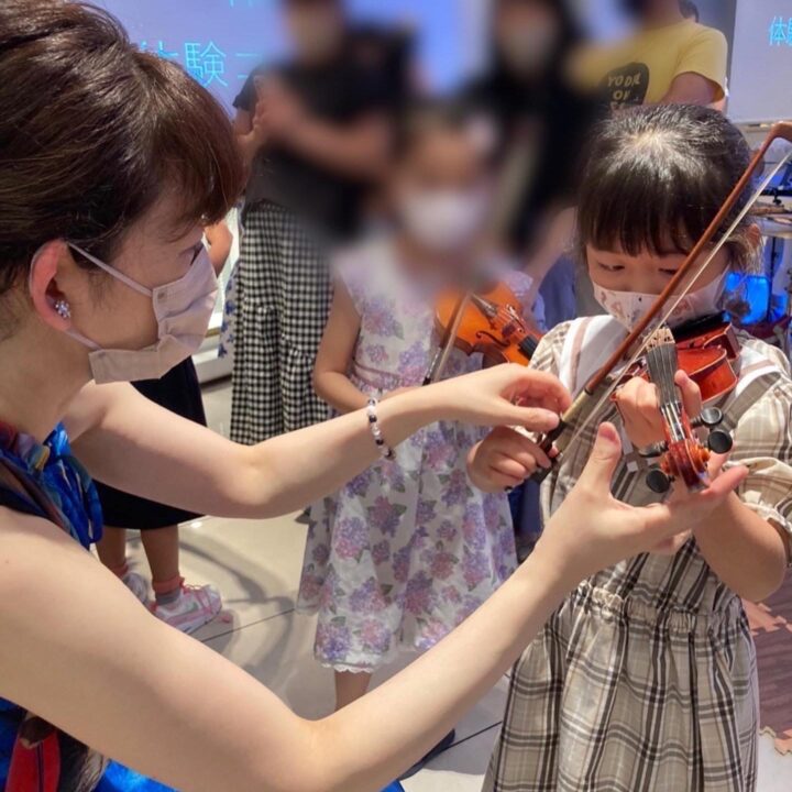 - 楽器体験コーナー(バイオリン、ピアノ、打楽器)