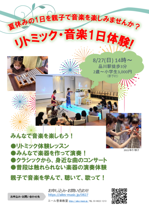 参加費: 2歳〜小学生 3,000円(付き添い無料。乳幼児のお子様もご来場ください(無料))