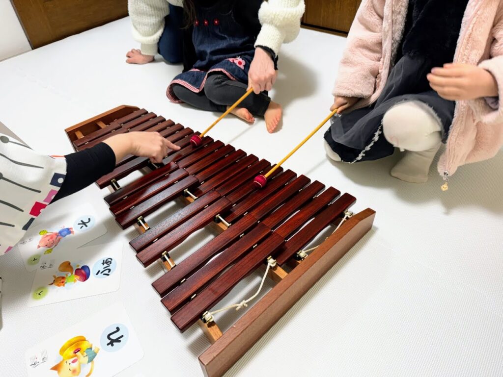 - 歌: 季節のうた・童謡などを一緒に歌ったり、音階、音と休符を体感するなどしていきます