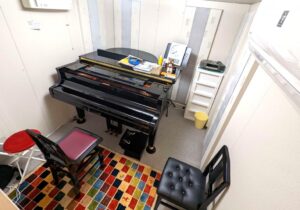 201教室は防音室の中にグランドピアノが設置されております。